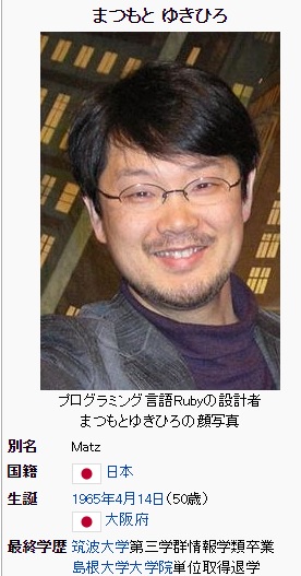 さて、プログラミングをしている人たちのみしか知らないであろう、そしてrubyをしている人しか知らないであろうこの人!実はすごい人です。今のRuby言語を開発した人で今は鳥取ではなく島根に在住しているとのこと。
