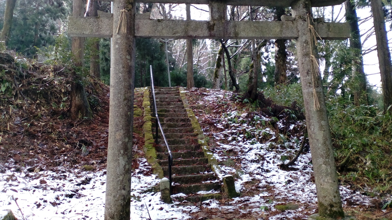 参拝者がいないのか、手入れがおそらく今はされていないのかはわからないけど階段にはコケがはえていて、雪の上からふむとものすごい滑るから気をつけて登っていった・・・まぁこんな季節に登る方もそうだな・・・