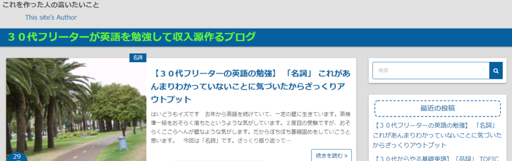 上のサイトが僕がテキトーにとにかく記事を貯めるのに体裁を整えただけのサイトです。まだ右サイドバーがつくり込めていません。記事を貯めてそのあとにとにかく細かいところは作りこんでいく感じです。