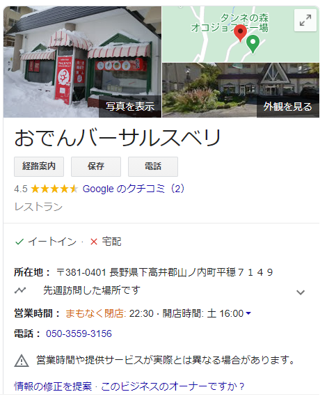 どういうきっかけで検索したのかわからないけど、志賀高原らへんでレストランかなんか探してたんですよね。その時に「おでんバー」ってあって、おっじゃぁ行ってみっかてなノリで入ってみました。