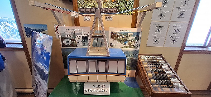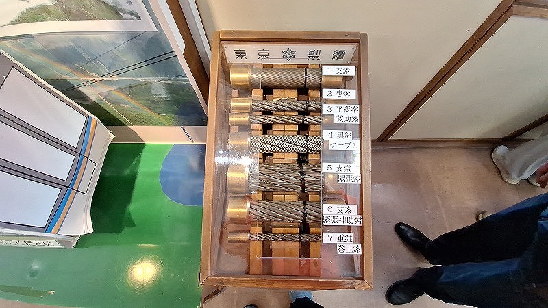 索道の索の展示やロープウェイのことがわかる展示物があります