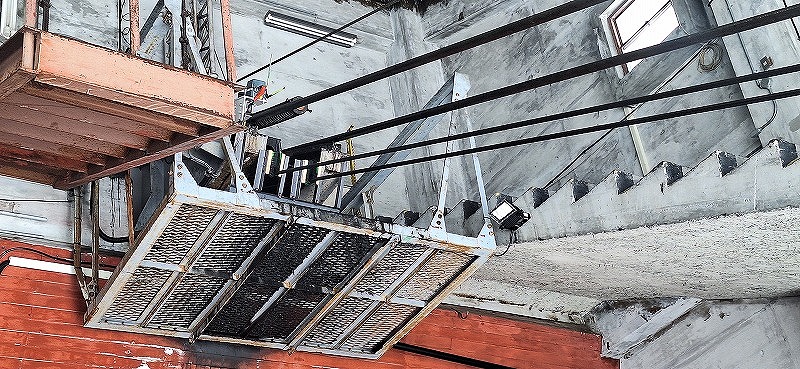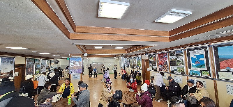 大展望駅の窓からはロープウェイから見える斜面が見えます。