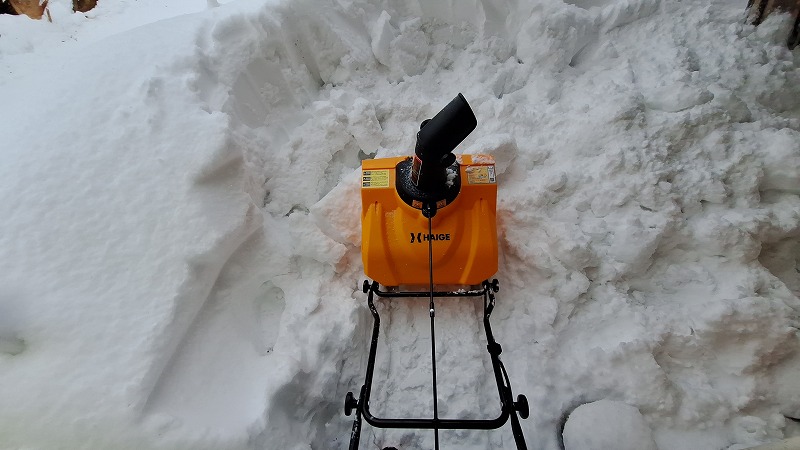 この電動の除雪機は新雪のうちなら無類の強さを発揮しますが、踏み固まった雪やべちゃゆきには全くと言っていいほど歯が立ちません。乾雪であれば、そして踏み固まらない柔らかいうちであれば太刀打ちできます。この希望の除雪機が来るのが遅かった・・・