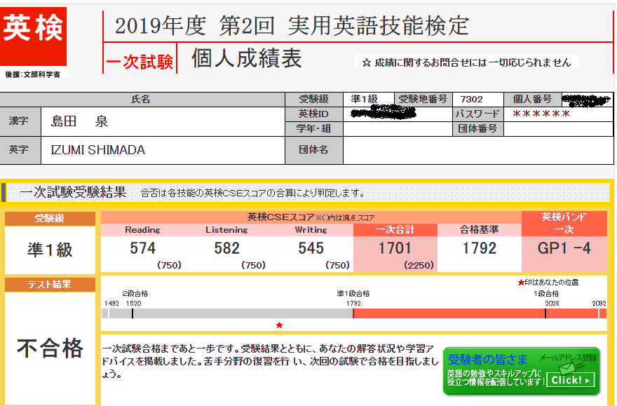 でも特にこの基礎力のなさが出たのは英検準一級の時でした
