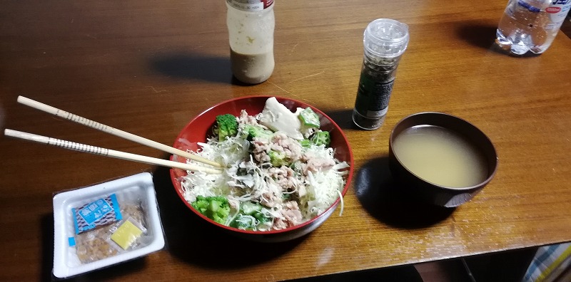 朝は食べ過ぎるくらいでもいいと思っている。やはりコンビニに立ち寄った時に菓子パンを食べたいという衝動にかられにくいのがいいと思う。やせなくても、体重が減らなくても間食をしないためにどうするかということが分かればよし