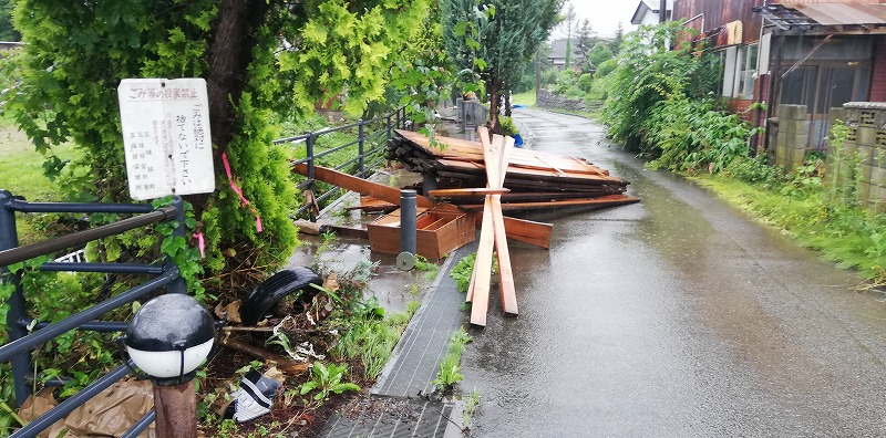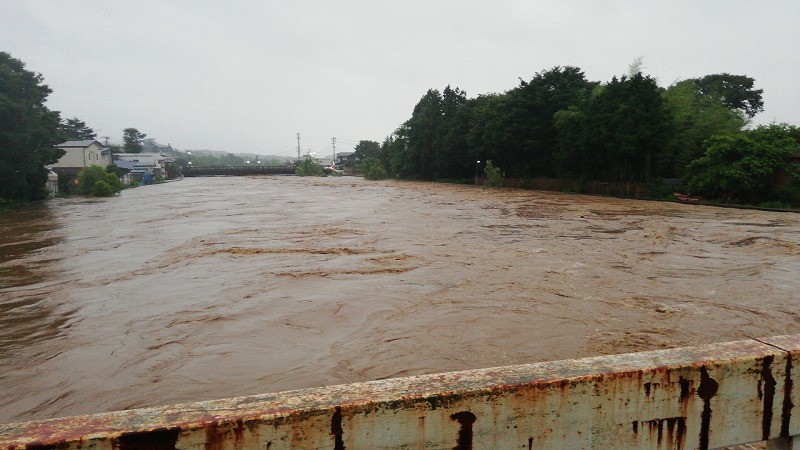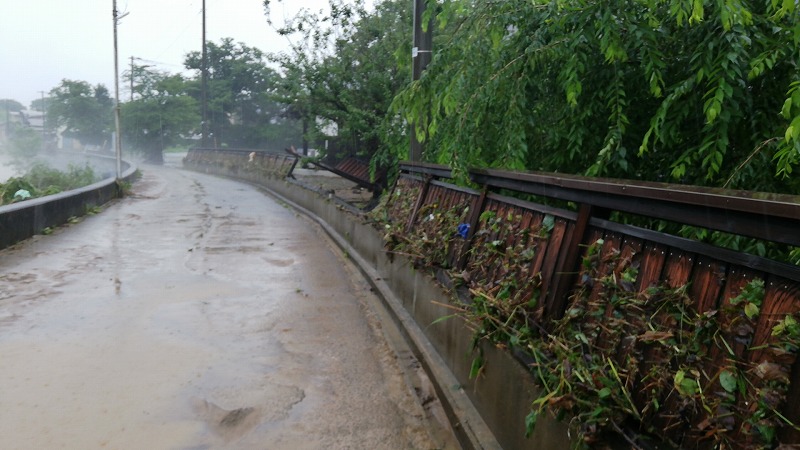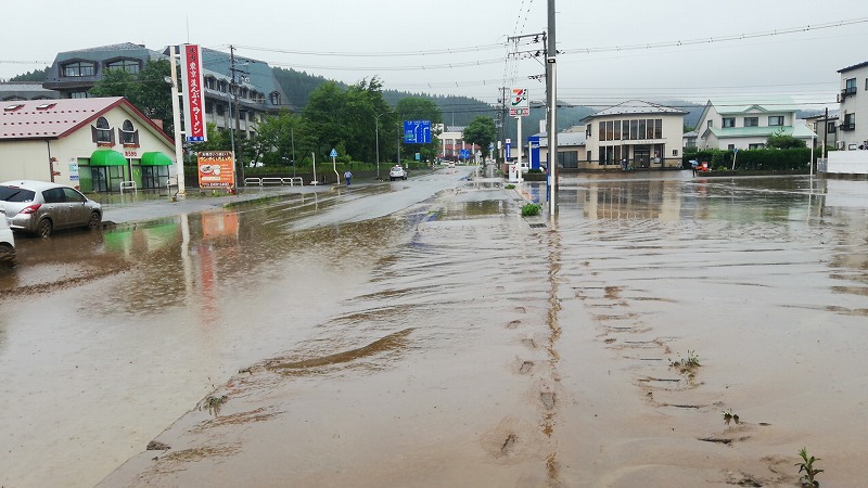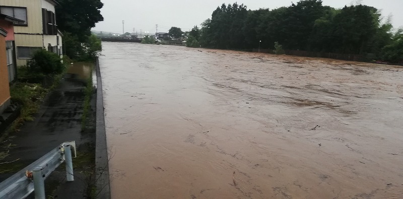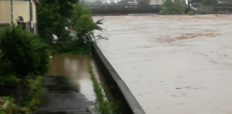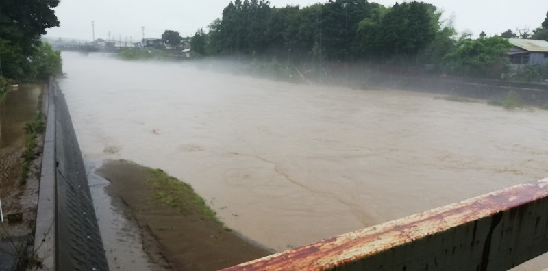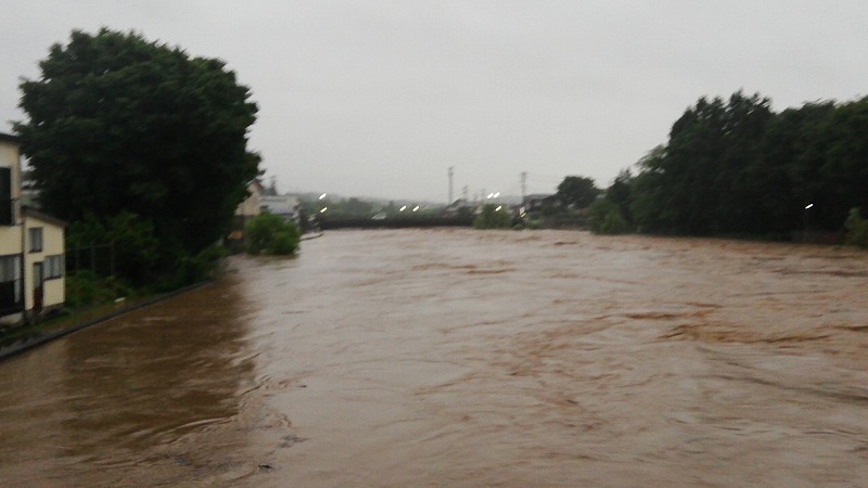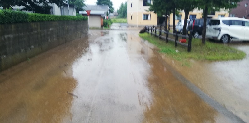 (馬場目川沿い 五城目町の大雨)半日で一か月分の雨量が降り注いだ秋田県の未曽有の大雨!五城目でも被害が出ました。ソトゴモリぷれいすは200メールの差で事なきを得たけれど・・・