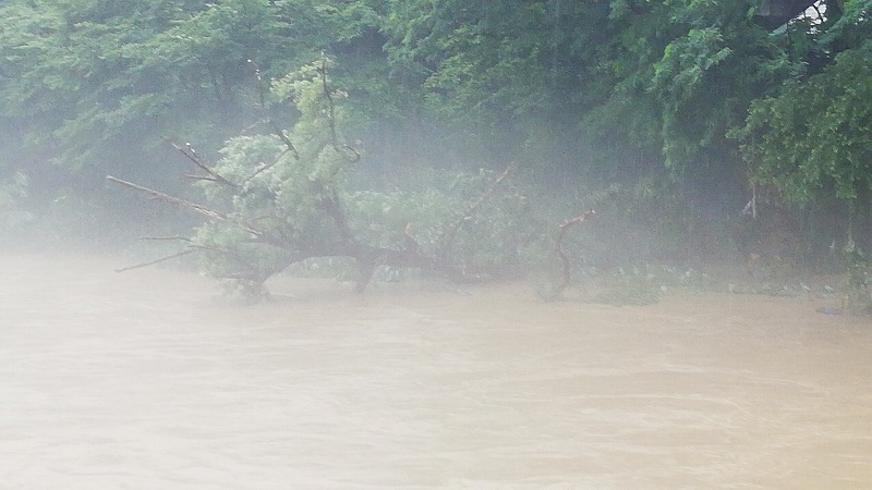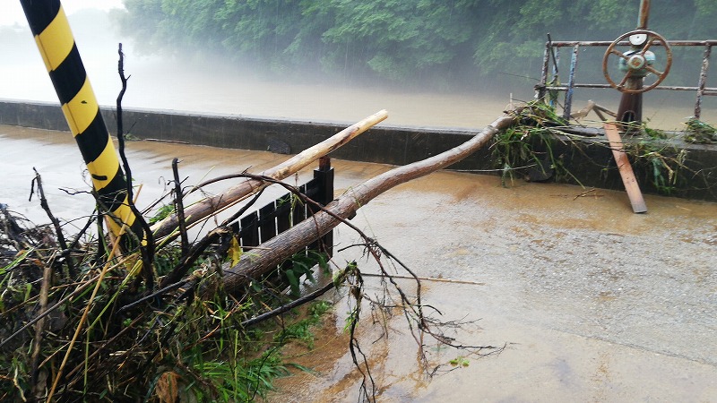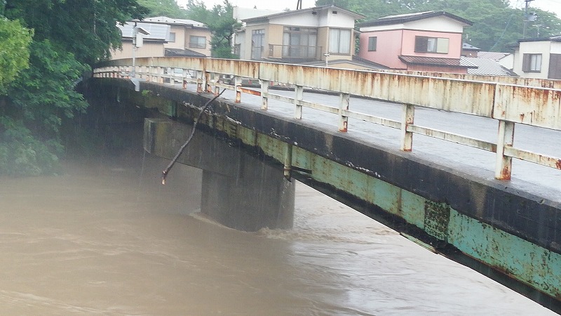 水がここまで橋の上のほうまで迫っているということは橋桁を流木が押し流す危険もあります。