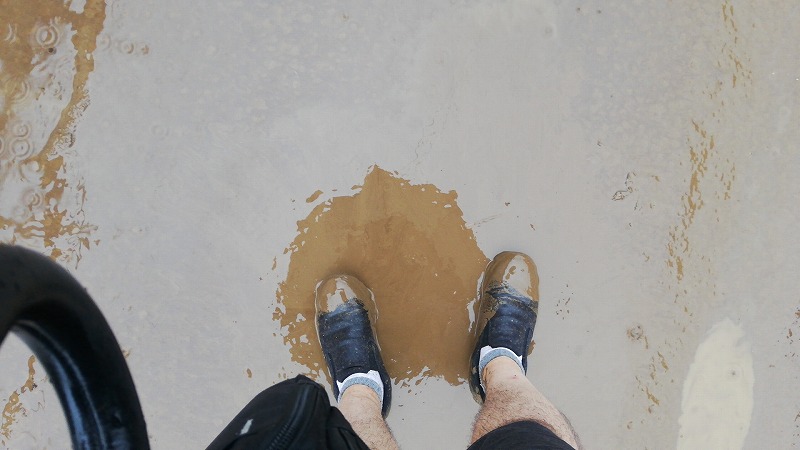 もう泥が深くて歩けないところばかり。地面まで靴底が届かず滑って歩けません。