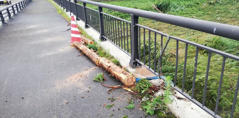 馬場目川に着くと通行止めにはなっておらず通れましたが、流木が引っかかっており、水位の高さを物語ります。まさかここまでの高さに来たのかと・・・
