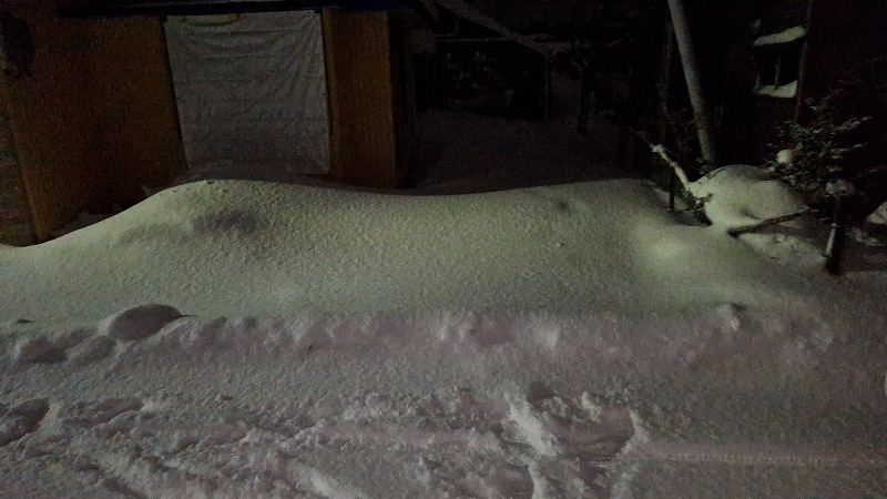 この時点で積もらないように雪をすべて押しておかないと車がカーポートに入れなくなるんですよね(-_-;)